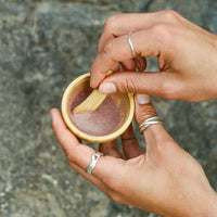 This mini bamboo bowl and spoon is perfect for mixing our Hibiscus Facial Grains face mask, or to scoop our Tooth Powder, Hemp Cream, Happy Joints Balm and Relief Salve.